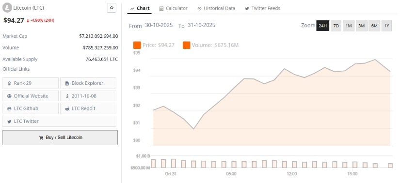 Пока мы все мечтаем о $4,000, давайте не забывать, что LTC все еще подвержен краткосрочным рискам. Ежедневный объем торгов около $93-$94 был вялым, а падение на 5% 31 октября 2025 года послужило суровым напоминанием о том, что рынок далеко не стабилен. Трейдеры внимательно следят за зоной поддержки $90-$91. Если она прорвется, ожидайте коррекций, которые могут серьезно подорвать «бычий нарратив». Или, может быть, это просто ухаб на дороге? Кто знает? 💥