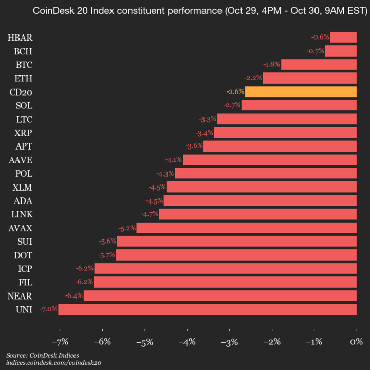 Вот и чемпионы! Или, по крайней мере, те, кто не рухнул лицом вниз: HBAR, с незначительным падением на 0.6%, и BCH, ускользающие всего на 0.7% — как будто они вежливо уменьшаются, боясь наделать шума.